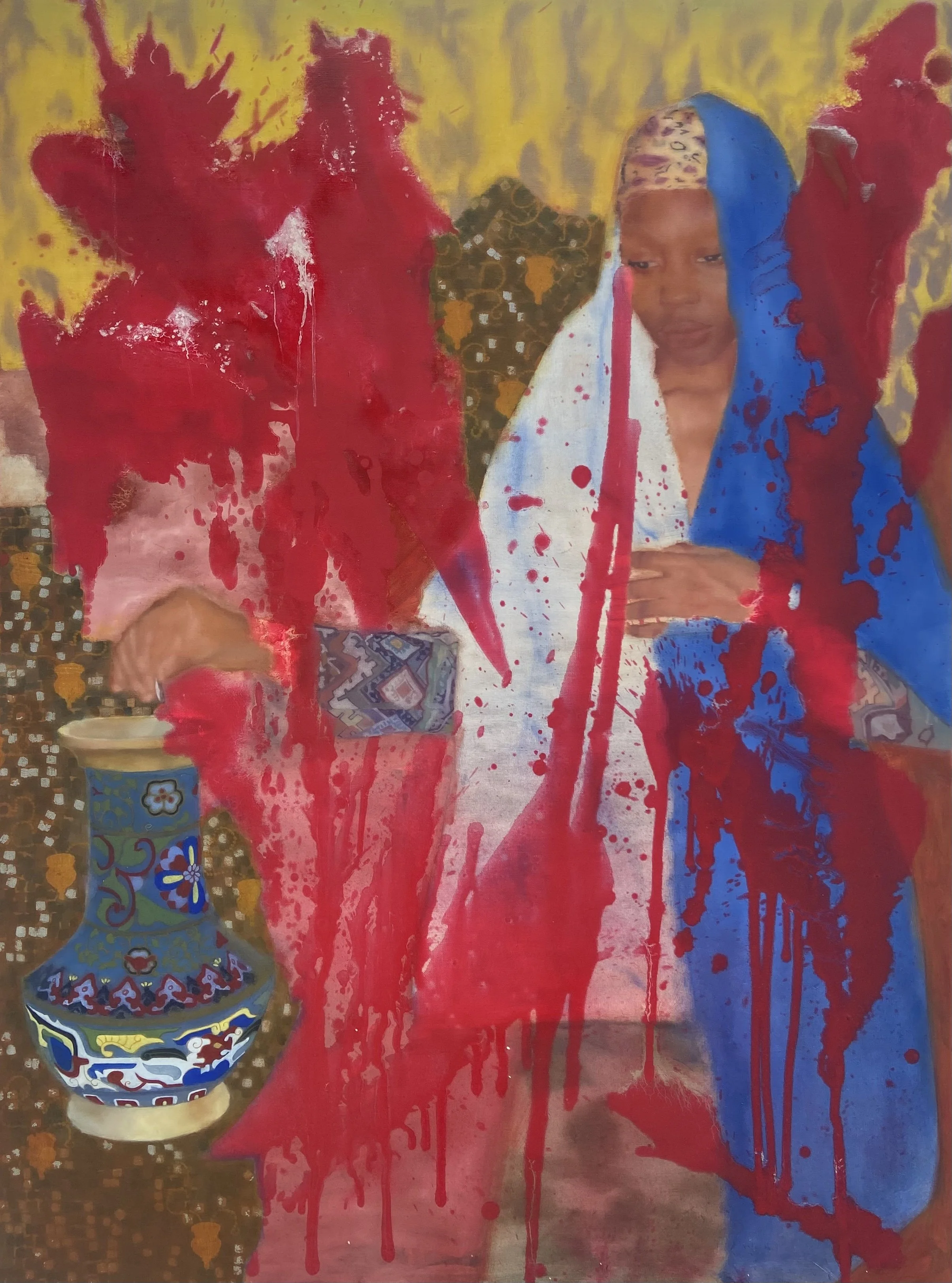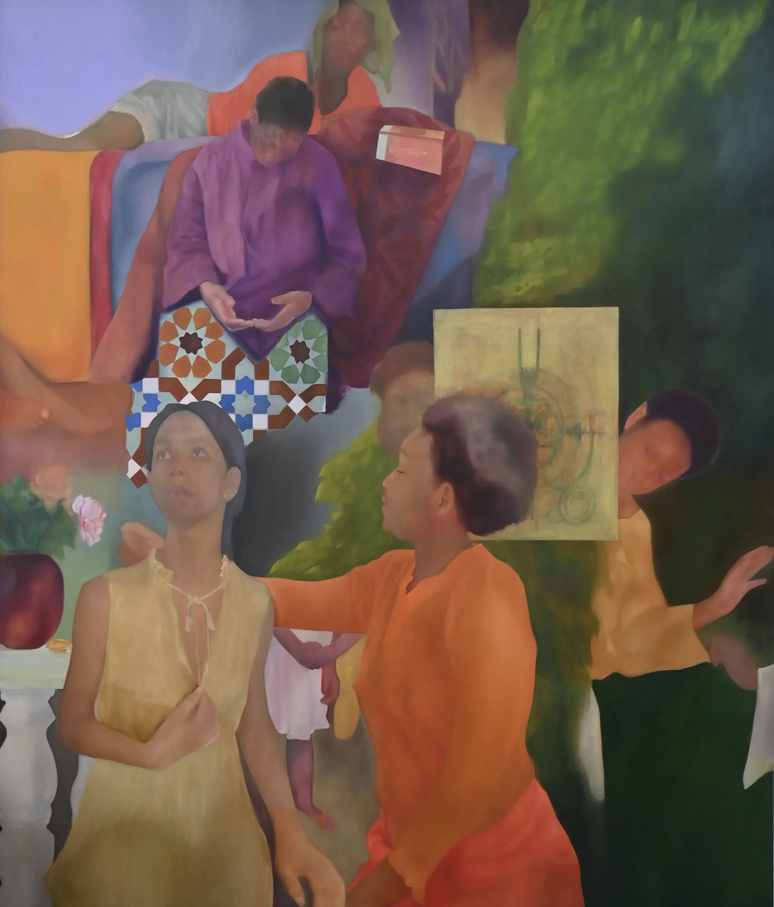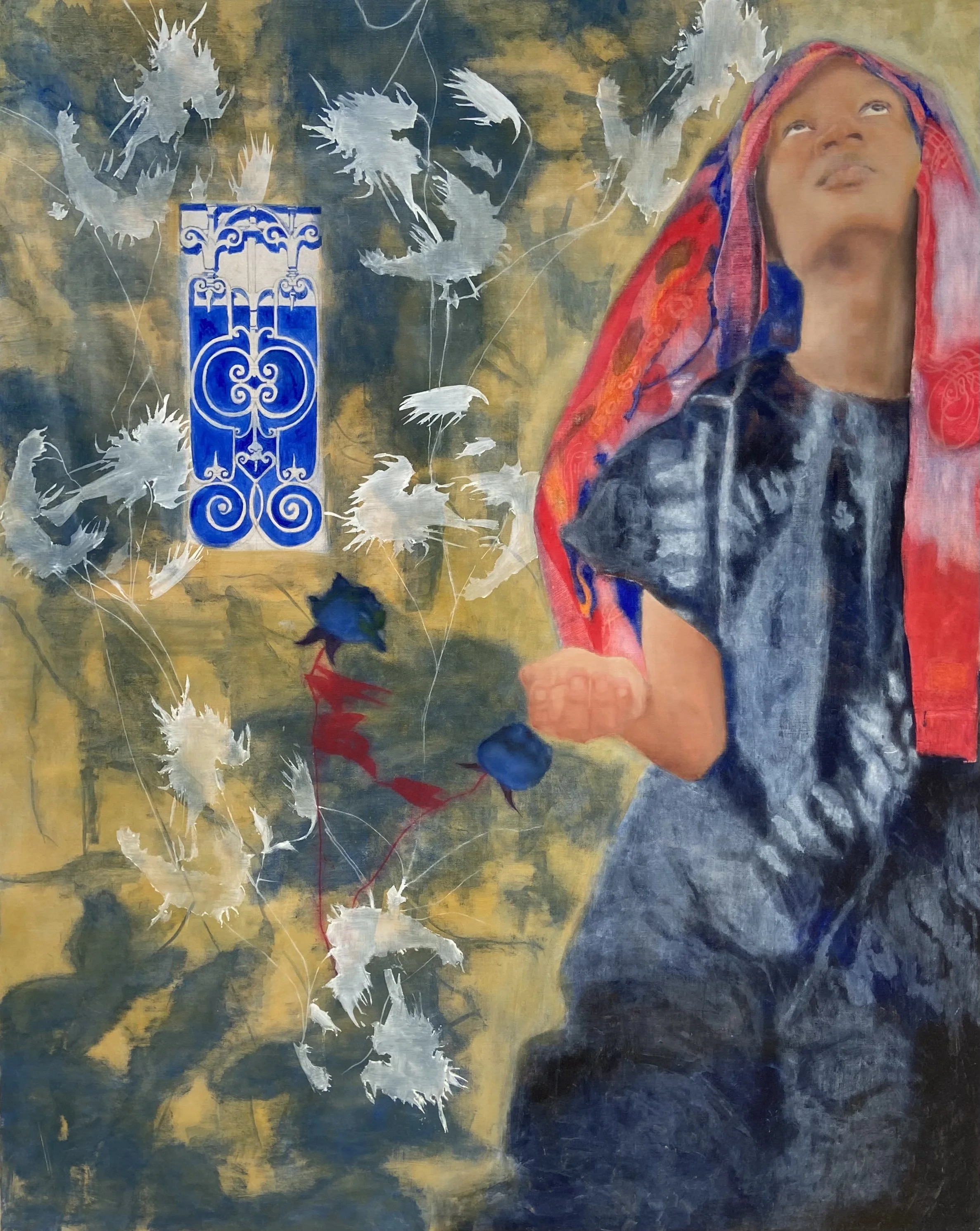 Figure 2.2: Maria Adjovi, Au seuil des espérances, 2025, huile sur toile, 78,74 × 66,92 pouces (200 × 170 cm). Photo: avec l'aimable autorisation de l'artiste © Maria Adjovi
