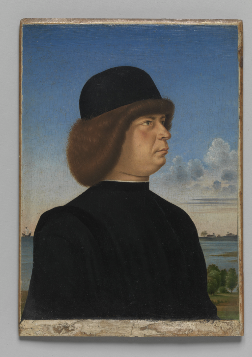 Figure 10: Jacometto Veneziano, Portrait of Alvise Contarini (?); verso A Tethered Roebuck, ca. 1485–95, oil on wood; verso: oil and gold on wood, overall 4.63 × 3.38 inches (11.76 × 8.59 cm); recto, painted surface 4.13 × 3.13 inches (10.49 × 7.95 cm); verso, painted surface 4.38 × 3.13 inches (11.13 × 7.95 cm). Robert Lehman Collection, 1975 (1975.1.86). Photo: courtesy Metropolitan Museum of Art