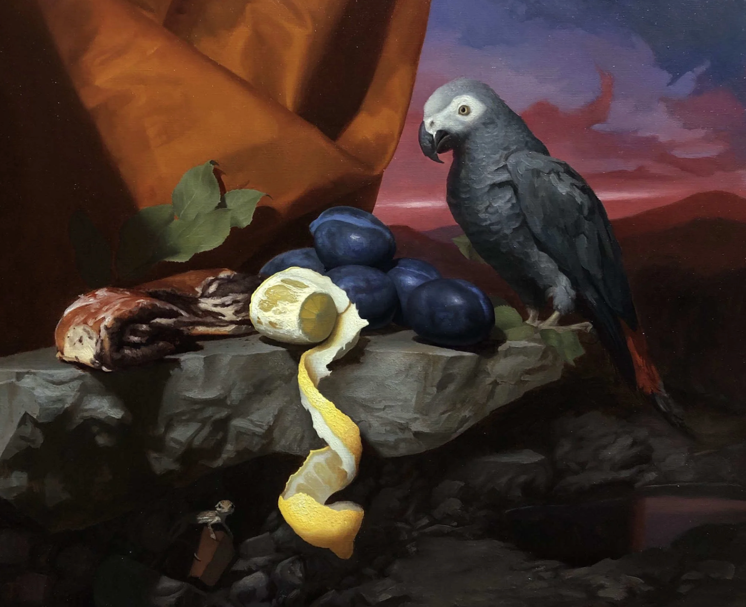 Figure 16: Dan Bunn, Parrot with fruit and a pastry, 2020, oil on linen, 22 × 18 inches (55.88 × 45.72 cm). Photo: courtesy the artist © Dan Bunn