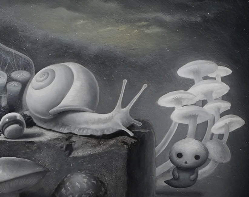 LX: That's so cool. What about this Alien Fruit one with the snails? I like how you paint a lot of snails even in your recent work [laughs].
