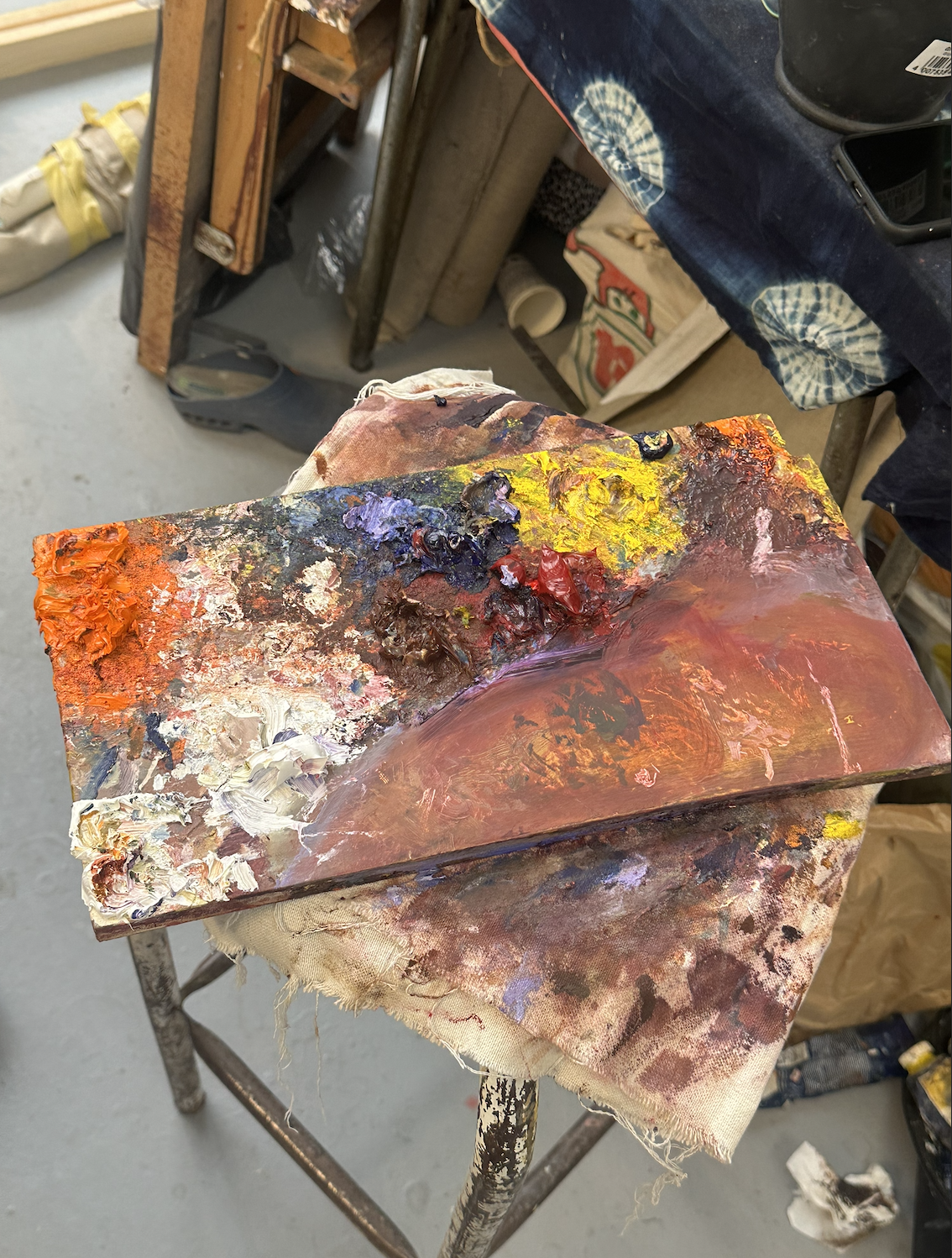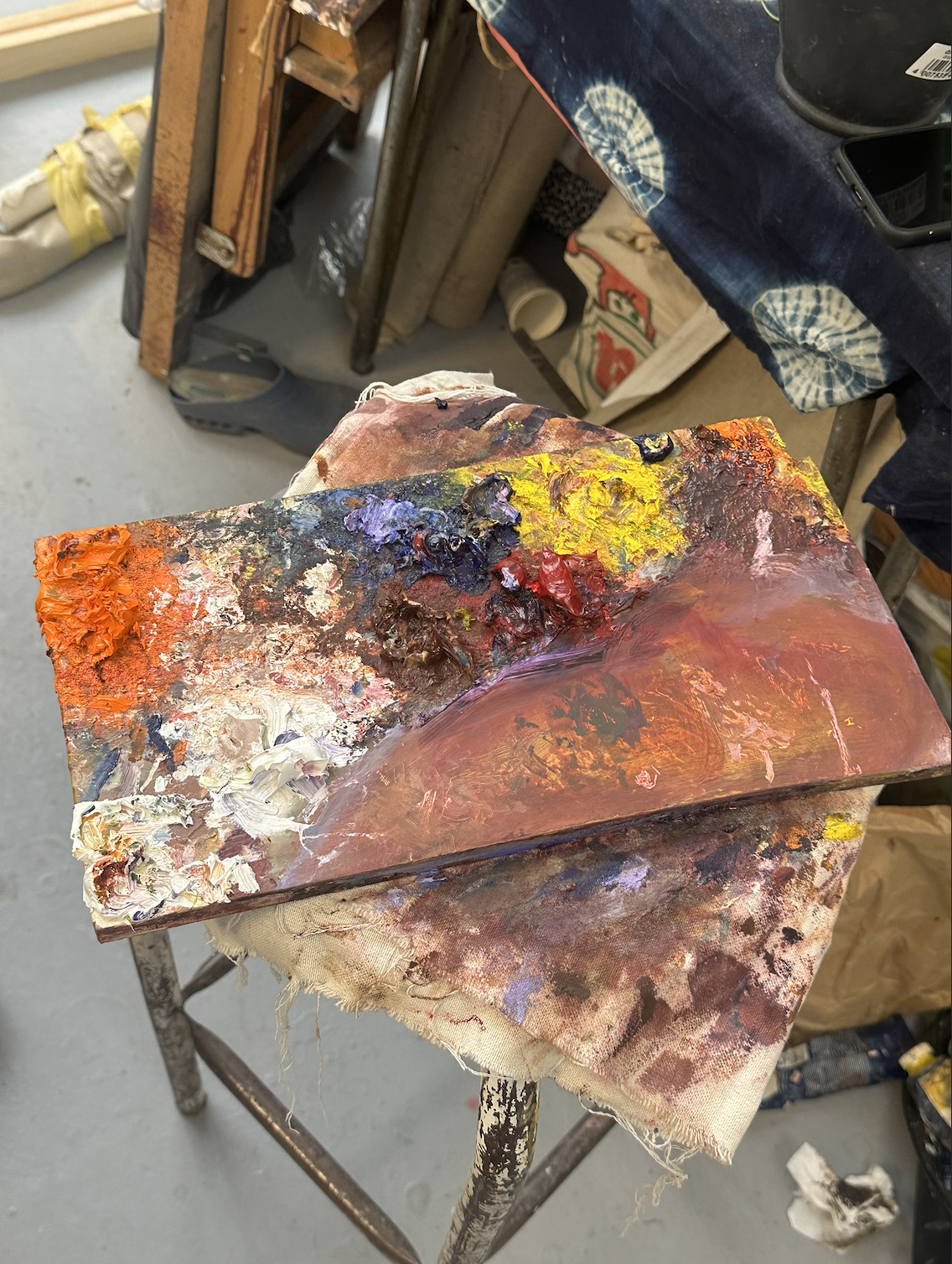 Figure 4: Studio view of Maria Adjovi’s paint palette. Photo: Lara Xenia Mashayekh