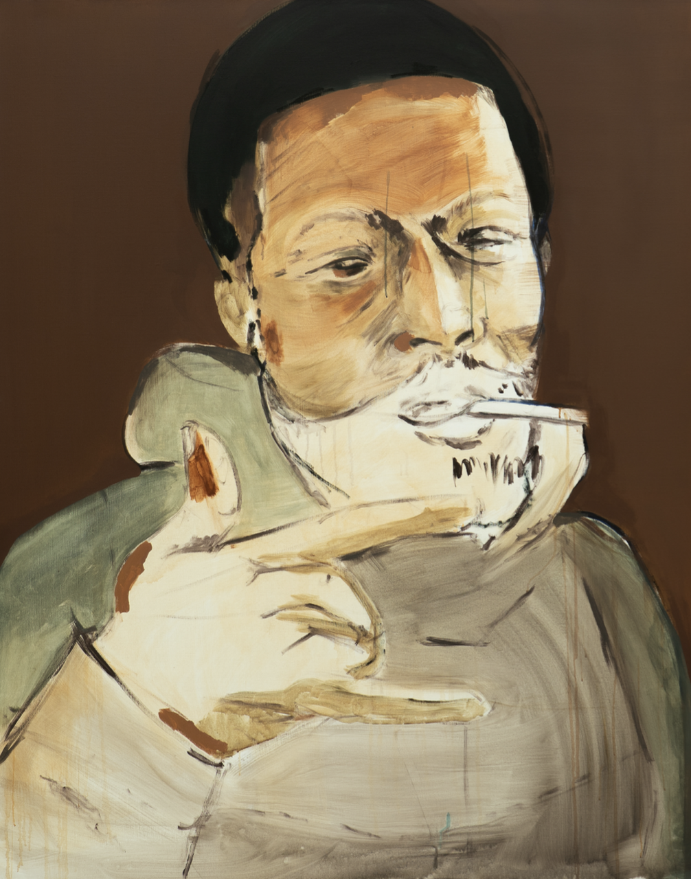 Figure 2: Lassana Sarre, L'homme qui fume, 2025, acrylique sur toile, 62.99 × 51.18 pouces (160 × 130 cm). Photo: avec l'aimable autorisation de l'artiste © Lassana Sarre