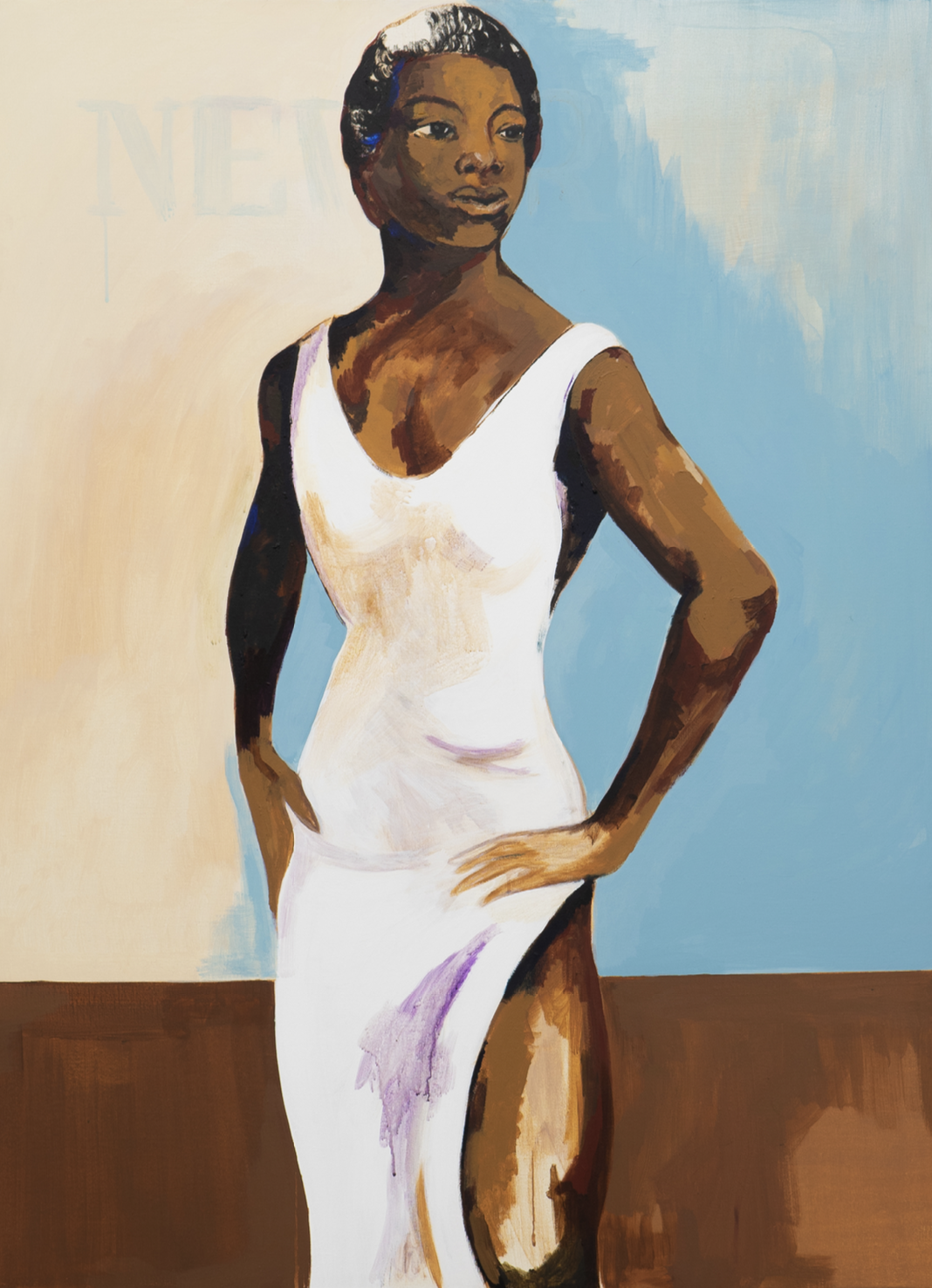 LA: Oui. Ce tableau est inspiré d'une photo emblématique de Maya Angelou, que j'ai retravaillée. C'est un hommage à une femme qui a inspiré penseurs et intellectuels outre-Atlantique. L'œuvre a été commandée par une femme, et comme je peins rarement des femmes, c'est pour moi une rupture significative. Mon travail se concentre souvent sur la réalité et la violence des hommes, mais j'essaie à chaque fois d'adoucir ces figures. J'étudie souvent la peinture et j'aime intégrer les mouvements artistiques existants dans mon travail pour me positionner dans l'histoire de l'art et maintenir un lien institutionnel important.
